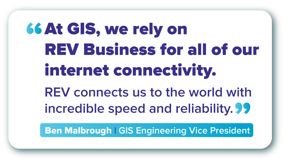 “At GIS, we rely on REV Business for all of our internet connectivity. REV connects us to the world with incredible speed and reliability”
